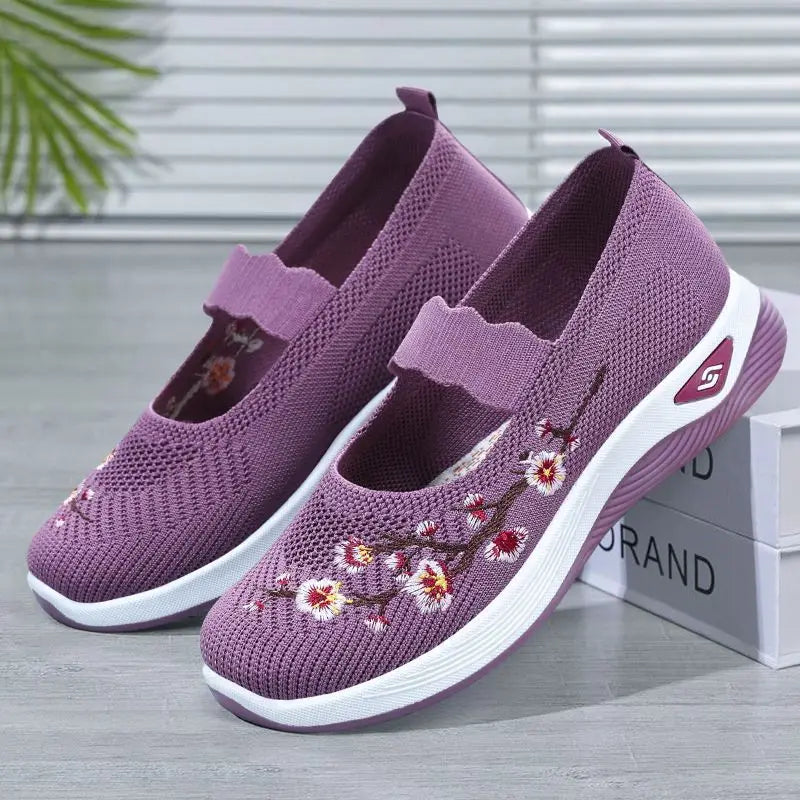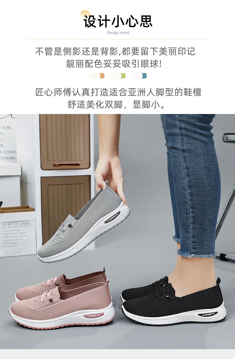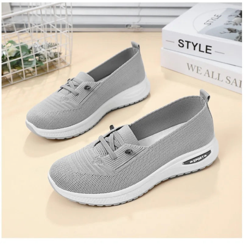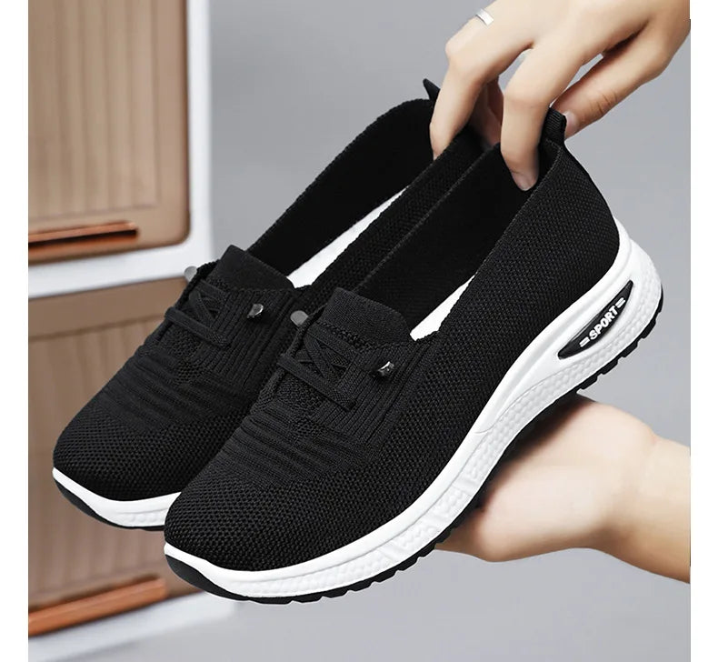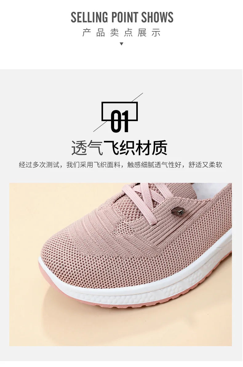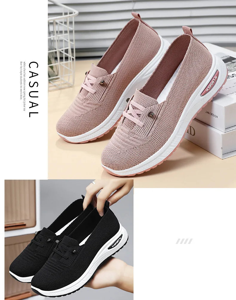 Women's Breathable Knitted Mesh Slip-On Sneaker Woman Lace Up Orthopedic Low Top Soft Loafer Shoes Big Size 43 Platform Trainers